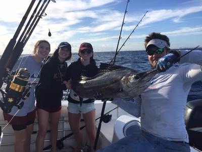 Trolling and Kite fishing has been productive. We have had to pick our days offshore. There has been a mixed bag of Sailfish, Dolphin, King Mackerel, and blackfin Tuna offshore. Congrats Britney on the catch of the week! A 40 pound dolphin pushed her arms to their limit. This beauty ate a live bait off the kite. Her hubby Joe, also landed his first sailfish on spinning gear. A great trip!Bottom fishing is still good for a variety of snappers.