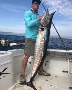 Recently, the Yellowfin bite has been so good that our clients have been catching their fill of Tunas early into our trips. We can’t just head back in. So, we’ve been daytime dropping down for Swordfish in depths exceeding 1,800 feet.
