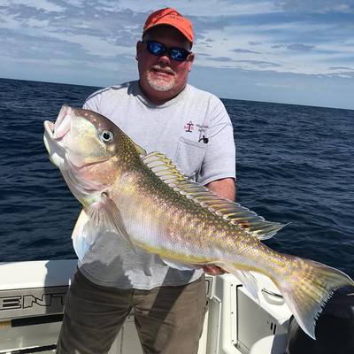 Another option for our clients has been deep dropping on a few of our “honey holes” for yet more tasty species like Snapper, Grouper and even Golden Tilefish. Check out this big Tile!