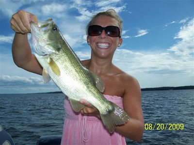 The weather has been great and the fishing has been even better! I've mostly done combination White Bass/Largemouth Bass trips lately. Most days we'll limit out on the Whites in a couple of hours and spend the remainder of our day catching and releasing Largemouth Bass. I did fish for catfish one day, and we caught 18 Blues in a few hours. I've done a little Crappie fishing and caught some real nice fish. I'll get more serious about the Crappie starting Sept 1st. We've also caught some real nice Smallmouth Bass, the largest being a 5.36 Lb beauty that took Big Bass at a recent Bass World Tournament. Thanks for catching that one, Jeff!