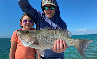 Tom is a trout guide near Boston, MA and came down on a family vacation with wife Tanya and seven year old talkative cutie Makenzie. I have to tell you, Tom is raising her right because the girl can fish. She was casting on her own and working the rod on her own and not only did she catch a bunch of fish but she caught a permit on her own. Wow! That was the fish of the day for sure. We moved on and fished another spot where Tom landed a monster mangrove snapper in the 7lb range. Dang Tom! That fish came home with me and I just had it for dinner. Delicious!