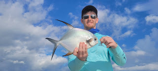 I decided to reschedule my Sunday charter and I felt much better but I was back to work today with Jeff, Drew and Will. So far Drew has been on fire catching his first snook and bonefish on our last few trips and today was no different. Tarpon was first on the list but they were definitely MIA today compared to the decent numbers we saw on Friday. After the failed Tarpon mission I took them to an area where the fishing has been good and there has been a surprise for some of my anglers but I didn't tell them this. All three guys were busy catching nice yellow jacks, horse eye jacks, look downs, snappers and then Drew struck again as the surprise materialised in the way of a nice fight and a silver flash next to the boat. Drew got his first permit! In the end the fishing was so good the guys smoked through 120 baits. At the same spot we hooked three black tip sharks but they got off and the day ended on the flats going another 0-2 on lemon sharks.