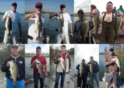 We are catching fish on worms,crankbaits,swimbaits,jigs. I have heard a few reports from some others that they are starting to catch them on spooks also. We are catching fish from 6 to 8 feet out to 15 feet of water.