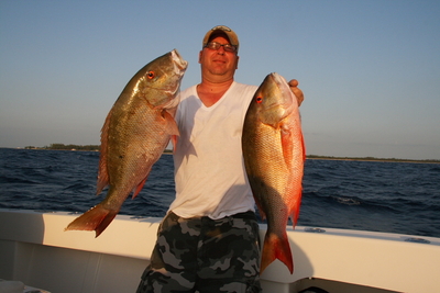 I also made my first summer trip over to Bimini. We were hoping to get in on the mutton snapper bite during the full moon period in May. We have always done well a few days prior to the full moon and have been going with my same customer, Roger, targeting these muttons for quite some years. This year the mutton bite while we were there did not pan out. There was very little current, which made for difficult fishing. We did catch a few muttons every day, but not like it should have been. When the current is light, the trash fish like trigger fish etc. simply destroy your bait before the muttons can come in and eat it. We went through a lot of bait to catch those few muttons, but at least we caught some and they were definitely decent in size. We also went to a new area and went yellowtail snapper fishing. That was simply unbelievable with big flag yellowtails showing up almost as soon as we got there. Not only were the tails thick, but average size was 3 pound and we had quite a few over the 4 and 5 pound mark. These yellowtails looked like small muttons in size. The new spot definitely paid off and the sharks were not as bad as some of the other yellowtails spots that I usually fish. We did run around the corner and briefly looked for the yellowfin tuna. We found one school right off the bait and even marked them on the recorder. We had two bites instantly with one being a shark and the other one was a tuna eaten by a shark. We found some more birds but no other schools of yellowfins. We didn't spend the whole day since we already yellowtail fished all morning and were heading back for the muttons.