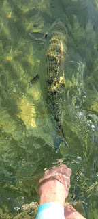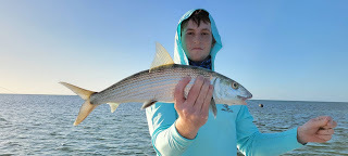 Today I had two trips scheduled but the morning client never left a deposit and never responded to my calls or texts so I moved Jeff from afternoon to morning and it was fine by me. I love fishing with Jeff and his boys Will and Drew but Will is in college so we were missing one. Drew was set on catching a bonefish so we took advantage of the tide we had and Drew capitalized landing the first bonefish he hooked and hooking a bigger one later but the hook came free after a long run. Ouch! The trip wrapped up looking and fishing for tarpon but no bites. Congrats Drew!