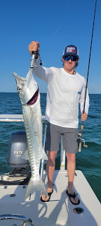 Finally the winds died down and the conditions were great as Kevin and his son Noah boarded my skiff. They wanted to bend the rods and catch different species so we did just that. We started off at a shallow ship wreck where they caught a bunch of species including snappers, jacks, and more but the highlight was a big, massive barracuda that kept eating out fish and Noah landed when I rigged him up for it. Wow, what a 'cuda! Before the trip was over I took them bonefishing where Kevin caught his first bonefish. Yes!