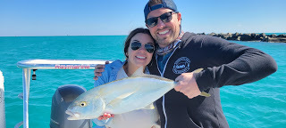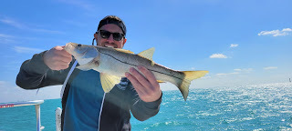 Sometimes I just want to cancel a trip when I look at the weather and boy today was one of those days. Although we had clear skies, there was a whole lot of wind, gusting to around 32 MPH. Dang! But, James and his wife had booked me and we really had one decent spot to fish in that wind so we went for it. It worked out. They caught snook, yellow jacks, snappers, rainbow runners and a few more species. The fishing was actually very good and we had a blast. I was glad I didn't cancel!