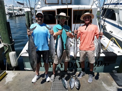I continued trolling the area working from deeper waters to shallower waters picking up more Bonitas and Kingfish. Travis, Noah and Elisah all took turns on the rods catching fish, which lasted throughout the entire fishing trip.