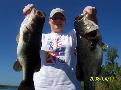 The water temp is still in the mid 60's and the shiner fishing is unreal. I had Chris and Christen Lewis out for a full day today to start their Vacation to Florida off right. Chris will have to deal with getting out fished all week as today Christen was 8 for 10 on shiner bites with the three biggest fish weighing over 20 pounds. I will take some blame on Chris's behalf as he did have the fish of the day hooked and I was about 6 inches a way from lipping this fish that was well over 10 pounds when it jumped and pulled off.The big fish are under big grass matts in the main river and eager to hit a wild shiner all day long. I still have all of May open and as I have been saying in past reports May is my favorite month of the year to fish the St Johns River. Thanks From Capt Ed Bussard Guiding Clients To Trophy Bass In Central Florida For 28 Years www.basschallenger.com 800-241-5314