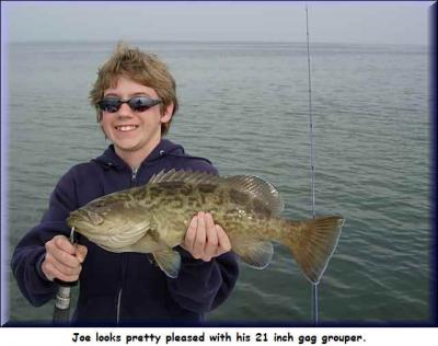 I decided to take Bob and Joe grouper digging. Often the grouper will play when the other fish won't. And, right from the start we had great action. Those grouper were just blasting those baits for everything they were worth. Bob did pretty well with them. He caught a few, broke off a few, and hung several in the rocks. But, using the old offshore grouper trick of taking all the tension off the line and waiting a while, twice he got fish out of the rocks with it.
