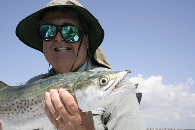 Last Friday we ran a trip out of the Salty Sol Ramp on Gandy Blvd. Bait was alright but small. Located a good deep water grass reef and when the tide started to go out the the bite turned on. Caught several nice trout to 22 inches, plenty of big mackerel, some around 4 to 5 lbs, and some smaller sharks. Used some of the greenbacks to get the bite going and switched over to a topwater lure for some added excitement.