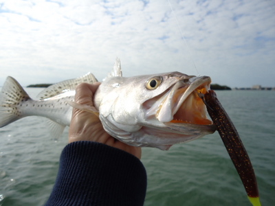 Once the water warmed 2 degrees and tide started it was if someone flipped a switch. I worked the same grass flats as Wednesday with more action and several larger trout in the afternoon. The big catch of the day was snagging a Manns lure package! Anglers remember to bring back all your trash better yet bring back more than you take.