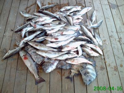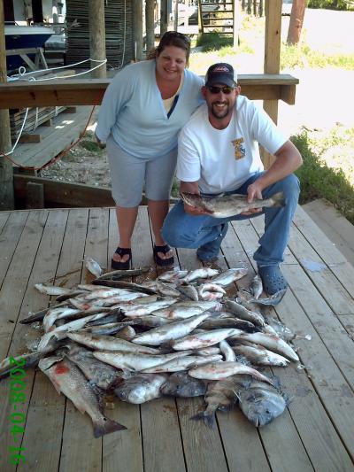 Trout slam Sunday on the Beach. Duke and Amanda Wichers met me a Campo's and from there we headed to the Sound on a pretty day with no wind finally. The tide was not moving much, but no one told the Trout. Right from the start they were putting some pretty Trout in the boat with Hybrid Flurry 3' under a cork. I joined in on the fun and by 10am we put our limits of Trout (14'-22') on ice along with a couple of Reds. With Trout done we made a move to get on some more rod bending action. Here we fished with dead shrimp adding a dozen big Sheepshead to the box, along with a monster Drum Duke caught and released. Great day on the water and Duke and Amanda had a great time. Total for the day was 75 Trout, 2 Reds, and 12 Sheepshead.