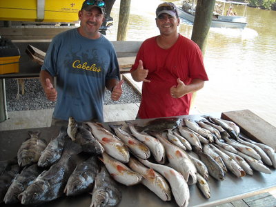 Just a few pictures from the past week. The Speckled trout are still biting in Hopedale and the redfish are still scattered with a lot of small rat reds just about everywhere taking dead shrimp under a cork along the shorelines. It is good to see the rat reds a good crop for the spring fishing. Back to the trout they are still in the outer bays and structures. Live bait is the best Shrimp or croakers some days they want it under a cork 2 to 4 ft and some times on the bottom just try both until you find what they want. The transition to the inner marshes has really not started yet but will be coming soon and the cooler weather will hurry it along. Good luck fishing!