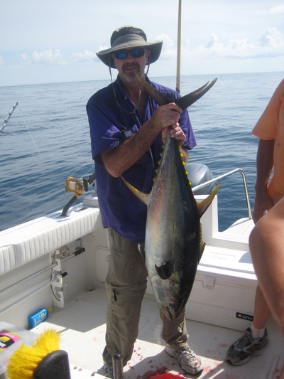 Thursday I was back on the Looney Tuna for an overnight trip! We left the dock at 2pm, headed south for the tuna grounds. We fished Mars and Ursa all night with not a lot to show for it. The rigs were covered with boats and the radio was very quiet! About 1AM we decided to make a move. We got set up on a rig and started putting a hurting on some almaco jack. Once it got daylight, the tuna showed up. We boated two very quick. The only problem was, they were both under size!! We fished for about 2 hours before we landed a keeper. The fish went about 50 pounds, caught on a chunk. Slowed down so we headed for AJ and snapper. Took a little while to find the AJ's but we were able to put a limit and one scamp in the boat. At the snapper hole. we found beautiful red snapper that were hungry for some pogies! Despite the slow start, we ended the trip with a box of fish!