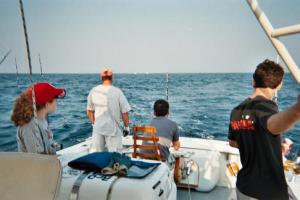 July 2, 2006: The Frank party landed five blue fin tuna in the 35-40 pound range. They kept one and lost a 70 pounder at the transom. They also landed two pretty gaffer dolphin and a king mackerel.
