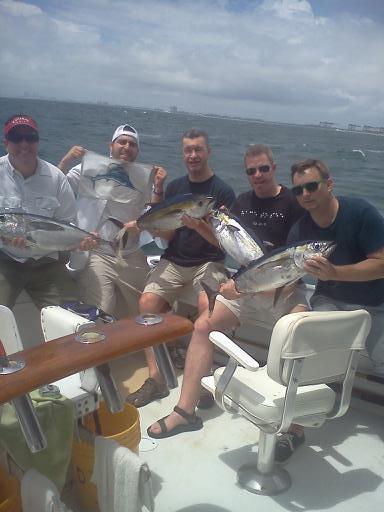 Robert Allison along with Kevin Drawe, Jonathan McIntyre, Mike Cocchi and Mike Kougioulis fromThe Sysco Company chartered the Happy Day Today along with the Topshotfishing team to do some deep sea sport fishing in Fort Lauderdale, FL. We had intermediate clouds, winds out of the east, seas running 3-4 ft.