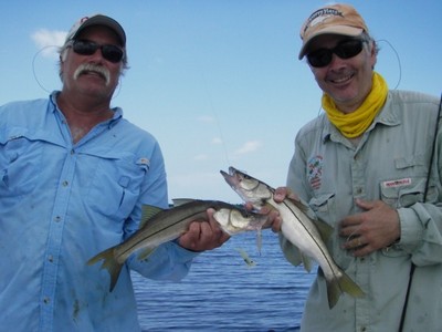 This all being said we had some reasonable success as we approach the Snook opener.I fished Monday with Mike Roberts from RI and we caught a fair number of of Jacks ,Blues and Ladyfish as well as some Trout and Shark bites.We also found some Snook but missed them. On Tue with Bob and Doriano and Jim Archer we caught a Tarpon on a 3 d minnow ,Doriano caught a Bull Shark and we caught 1/2 dozen or so small Snook on DOA Shrimp and 3D Minnows.In addition we caught some Jacks,Ladys and Blues. On friday we had a fair day with some Trout and the usual Jacks,Ladys and Blues as well as a few Juvenile Grouper and a bunch a sailcats. All the fish were caught on DOA Shrimp and 3D Minnows. This next week looks like the weather may create some problems but we will keep on trying .