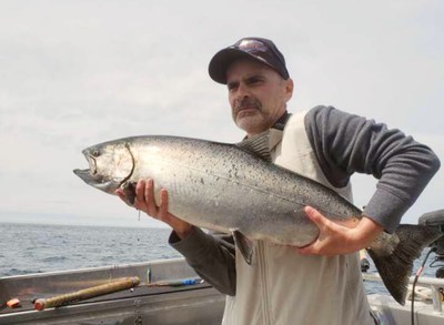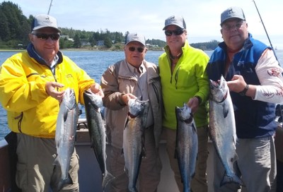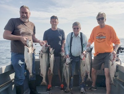 Fishing has been mostly good the past few days for Chinook. The bites are best at first light and then during tide changes in the day. This may change again in a few days. There are lots of Coho around close to shore and offshore. Fishing close to shore is always more fun as it is shallow water and the fish seem to fight harder. Small spoons and white hutchies are doing best.