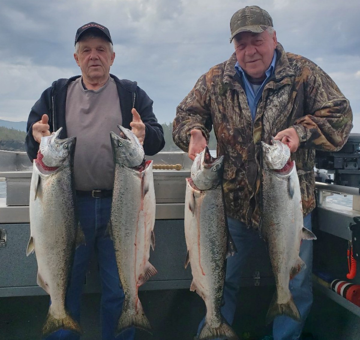 Coho have also come in close to shore in good numbers so that means we are getting lots of action throughout the morning. Our prediction at the beginning of the year was 2-3 times as many Coho as last year and we are starting to see that come to pass. Catching salmon in shallow water is always more fun and having incredible scenery is also a nice bonus. Small Silver Horde Spoons and white hutchies have been staples.