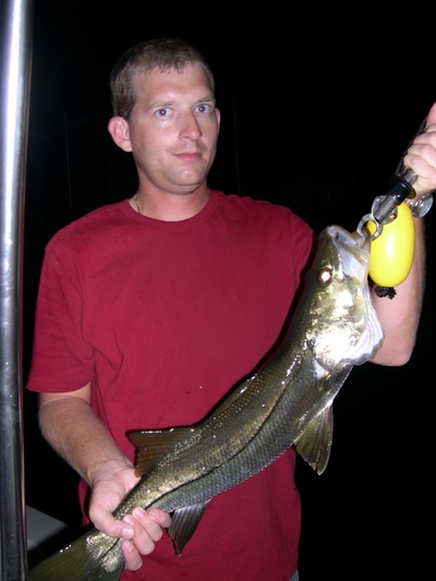 As you often hear me say night time is the right time for snook. The Tampa Bay waters become an entirely different world after dark. Downtown St. Petersburg and Tampa are all aglow in lights that reflect and dance on the waters surface. The ICW (inter costal waterways) come alive as restaurants, clubs and private homes turn on the lights. It's then the docks, canals and bridges turn on the lights and the snook parade begins. Caution night snook fishing is addicting.
