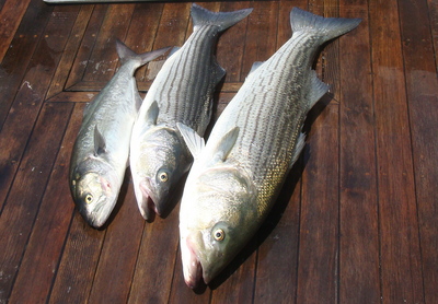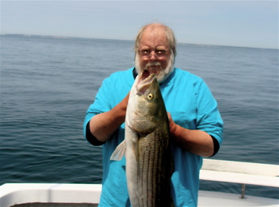 At my local tackle shop, the Goose Hummock, I've had rods built just for using this lead core for many types of trolling lure. In fact the last set of rods, with a slightly softer action tip with a bit of meat in the but of the rod, still had a somewhat even bend which makes fishing well using the tube. I put a hootchie on and a short while later landed three fish. One bluefish around 8 pounds, a striper measuring 35 inches and one more bass running around 27 pounds. No strain and no pain. This new rod handles this fish with ease, allowing you to play them and enjoy the fight.