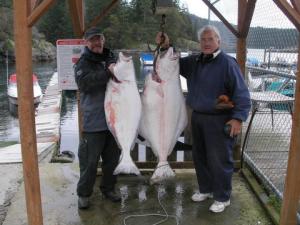 Good Time Dave's Fishing Charters in Victoria, B.C. Canada has been targeting Pacific halibut over the last week with 2 great trips. On March 26th Dave led Rene and his dad Rene Sr. to 2 nice halibut 40 and 71 lbs. The 2 big flatties were caught on herring and a lead head jig. On March 29th Dave guided Steve and Chris of Victoria to a limit of halibut 25,25,28,31,35 and 45 lbs. What a nice day 6 halibut in just over 2 hours of fishing time. These hali's were not picky, taking an assortment of our seafood buffet. We still have some halibut days available, so give us a call and we will hook you up!