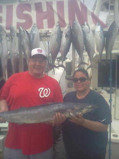 Phil and Stacey Bell from North Dakota along with two other guests from Finland chartered the Happy Day Today along with the Topshotfishing team to do some deep sea sport fishing Fort Lauderdale FL. We had east winds, 10-14 mph and 3-4 ft. seas, with blue indigo water in on the second reef.