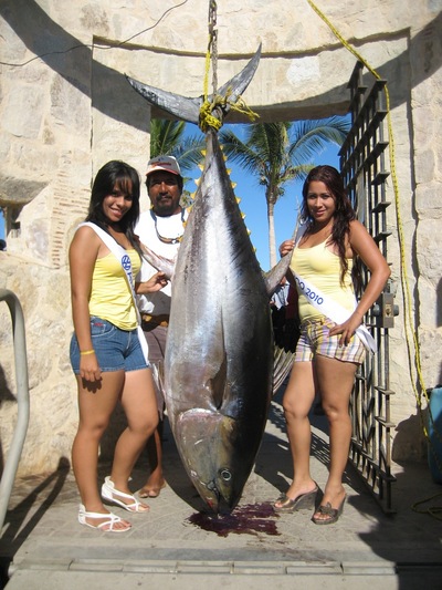 Yellowfin tuna, wahoo and dorado are the most targeted species now, with yellowfin most numerous. The key to success for the tuna has been drift fishing with sardinas, either dead or alive. The Iman Bank has been holding schooling yellowfin tuna in the 15 to 20 pound class. While a larger grade of tuna has been concentrated on the Gordo Banks, the outer bank in recent days has been most active, particularly early in the day. Most of the tuna on these banks ranged 40 to 90 pounds, some boats had as many as four or five of these fish. The first super cow sized yellowfin accounted for the last couple of weeks was taken on Thursday by none other than local pangero legends Hugo Pino and his son Agustine, they were key members of the "Fisherman" team of 2009 who won the WON Tuna Jackpot with the near record 383 lb. tuna. This latest fish they caught from the Gordo Banks while drift fishing with sardinas, weighed in at 302 pounds, they also had another tuna which weighed in at a not too shabby 185 pounds.