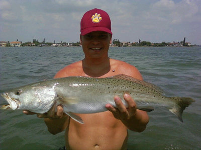 This has been the best year in recent history for large trout in Sarasota Bay. My buddy ,Steve Karwatt from Sarsota caught one that measured 34". Anglers fishing the deeper grass flats in 4-6 ' of water or 1-3 ' at daybreak should have no problem catching a really nice trout of quality size. Please take extra care and release all trout over 20" . They are all full of eggs and getting ready to spawn. You are easily able to catch a few in 15-17' range for the dinner table if so choose. Personally, the Trout don't actually taste that great once the water warms , so I release them all. A chrome torpedo top water plug in the shallows early and is tough to bet. When the sun comes the old reliable, CAL jig with the Copper Crush and the new Avocado colors are killers for big Trout.
