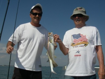 The Past week has been busy and quite productive.Starting on Saturday the 12th with John Mellott and Marco we were forced by the wind to fish the shelter of the Sebastian river and we caught ladyfish,Trout,Snook,Redfish and a few others all in all a nice day. On the 14th with George Vogel we caught a lot of Blues and Trout along with some Jacks and a couple of Weakfish.On the 16th Mike Roberts from R.I. and his nephew Kevin caught over 30 Blues about 15 Trout 4 Snook and a couple of Reds plus a smattering of Ladyfish and assorted others.Fishing on the 17th in the AM with the Harts we caught a lot of Blues and some decent Trout along with assorted others and in the PM with Jorge Gonzalez a long time friend and his guest we boated 20+ Trout 2 nice Pompano 1 red and a bunch of other fish. The week was good and the company was Great.