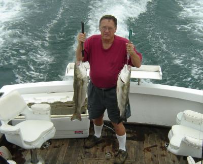 Last week I said we needed a fairly strong northerly wind to push the bass back up onto Billingsgate Shoals. Well, we got it. At the end of last week, after I had turned in the last report we got a 10 to 20 NNW wind which pushed a good scattering of big stripers up on the shoals. Some of these bass went as high as 35 to 40 pounds but most were a good solid 36 to 40 inches in length and a respectable 20 pounds. Jigging was the method of choice and actually the only way you could fish with the weather we were dealing with. It was a sunny cool day with a sharp northerly wind reminding you of early fall. A perfect bass fishing day.