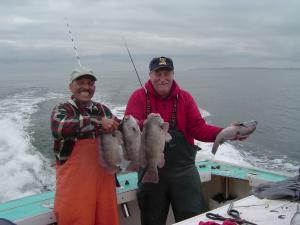 Well the weather man was wrong again. We thought the weather report sounded fishy , So we snuck off the dock around 7 with John and Me ,Capt. Neil , Joe(gotog) Donald, Timmy and Joe. Fishing was pretty good right away with everyone catching a few but fishing quickly fell of. After a day of trying a few different areas down the south beach. We used both green and whites with the greenies out fishing the whites. Red ones with legs on , single hook rigs were on the rod that was the hot hand. Timmy was HH with 12 keepers keeping his limit, Joe took home 7 with the pool a fat 6lbr, Donald took home 5 and Capts. Neil and Joe had 5 between them. The bite was a little picky , But the company sure was fine and it was a nice warm fall day . Its always great fishing with the guys But it was a special pleasure fishing with Capts. Neil and Joe. Neil brought some of his fine customs they were a real pleasurs to fish can't wait to fish my new one thanks Capt.