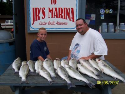 Striper fishing is Good. Stripers are being caught in the main lake and a few are starting to show up in the lower Chattooga River below the Highway 35 bridge. Look for main lake points and drop offs in the Yellow Creek area and where Little River and the Chattooga River join the Coosa River Fishing live Shad on down lines on the edges of the main channel is always a great way to catch these hard fighting fish. Keep your boat on the edge of the points or drop offs in 12-20 feet of water with your baits at 8-10 feet deep. The bite has been very early in the morning over the last week and very late in the afternoon.
