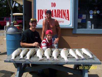 Bass fishing is Good. Most Bass have moved to their summer haunts on main lake points, humps and main river channel ledges. Crank baits, Spinner baits, Jigs and Carolina rigged plastics are always great baits to catch these fish on the drop offs. Spotted Bass are out on the deeper main lake points and river channel ledges. Carolina and Texas rigged plastics are producing good. Stroking a 3/8 ounce jig in a brown crawfish pattern with a Zoom chunk trailer in pumpkin seed is catching some good fish. Little River is producing some good spots on the river channel ledges above JR's Marina up to the Cave Hole.