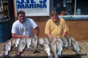 Striper fishing is fair and the stripers are in the Cave Hole in Little river, Alot of fish are moving back into the Chattooga river and Little Spring creek looking for cooler moving water with more oxygen, night fishing has started to pick up with some good catches from 11:00 pm - 4:00 am. With the low oxygen levels expect the best fishing very early am and late pm. Fish the upper Chattooga river and Little river and Little Spring creek. Use live shad on a down line 8 to 10 feet deep and flat lines are producing well. Look for the schools of stripers on your fish finder and adjust your bait depth to get it a foot or so above them.
