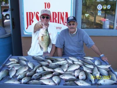 Crappie fishing is Great. The Crappie fishing has turned on with the cooling trend over the past 2 weeks, A lot of 60 fish limits have been coming into JR's Marina. The crappie are on the main Coosa River and other creek channel ledges. Bumping bottom in 10-12 feet of water with live minnows and Jiffy Jigs is producing awesome fishing. The bumping bottom technique is a 1/2 to 3/4 ounce bell sinker tied to your main line then come up 12 to 16 inches above the weight and tie a eagle claw snelled hook in size 1 or 2 style # 127 to the main line, come up another 12 inches and tie on a Jiffy Jig in colors JJ13 and JJ17, fish this rig 1 to 2 feet above the bottom on the old Coosa River channel in the Bay Springs and Yellow Creek area. Shooting docks that are on the main Coosa River channel with a 1/24 ounce Jiffy Jig in color JJ13 is still producing some good catches. Come on over to Lake Weiss Alabama and get in on some awesome fall crappie fishing !