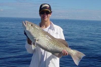 Mark Wallace had sore arms along with his son when they caught 11 bonitos, and 8 amberjacks in the 8 pound class on spinning outfits anchored over a wreck. Add their 2 grouper over 20 pounds each and you have a great day of action.