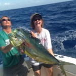 | What's Hot Offshore - March 14, 2014 The mahi-mahi are running in Fort Lauderdale. The strong east winds in March bring the mahi-mahi right in on the reef to spawn. These are nice 10-20 pound fish and some bigger, all biting inside 300ft of water. The bite will last only a couple weeks during the strong east winds. Get out there now! by Andrew Roydhouse |