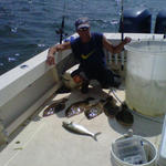 | What's Hot Inshore - May 23, 2012 WE HAD AL AND SOME OF HIS BUDDIES OUT FOR A MORNING TRIP OUT OF MORICHES. THEY HAD A BLAST LIMITING OUT ON BLUES USING LIGHT TACKLE WITH JIGS. WE THEN SWITCHED TO FLOUNDER. THEY LIMITED OUT ON FLOUNDER TO 17". THE KEY WAS HEAVY CHUMMING WITH SANDWORMS FOR BAIT. by Dennis Caracciolo |