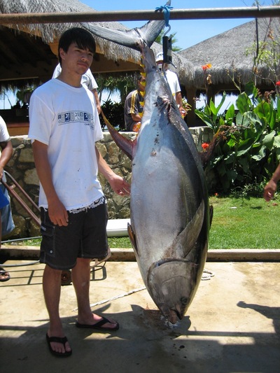 Other highlights and significant catches this past week included a 155 pound yellowfin tuna that was subdued by Dave Marcias of Yorba Linda, Ca. while fishing on the 32 ft. Alejandra, this tuna hit on a smaller sized Mexican flag patterned feather near the San Luis Bank. There was an even a larger tuna landed, a super cow of 319 pounds was weighed in on Monday by local La Playita pangero Efrin Arripez. This is the first yellowfin over 300 pounds this season that we know about taken off of the Gordo Banks. It hit near the Outer Bank while Efrin's group were drift fishing on the 22 ft. panga "Faty" with two dead sardinas pinned on the same hook with straight 60 pound mono, no leader.