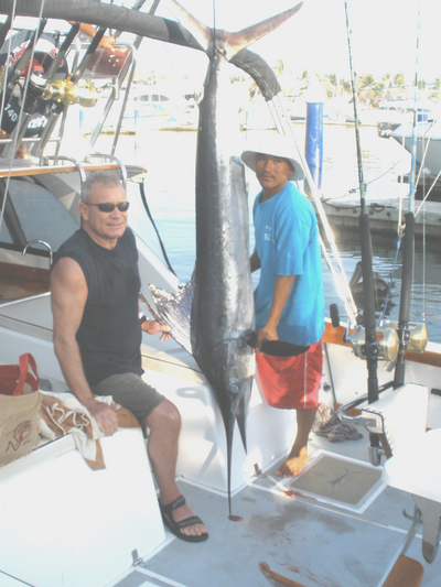 If you've ever read one of my articles, you know that the fishing in Puerto Vallarta (PV) never really gets slow or bad. But the fish do go down in size, so those expecting a 300 lb Yellowfin in March, nicely put, is an unreasonable expectation. But if you're looking at Yellowfin Tuna from forty to sixty pounds, with a possibility of an eighty pounder, then you need to head out to El Banco! But Yellowfin aren't the only residents out there right now, Blue and Striped Marlin have set up house! The only thing is, you'll have to go the extra distance of 15 miles or so Northwest to be an active participant in this game! Go prepared with a wide selection of lures and live bait. It seems they're changing their appetite from day to day. This past week Magnifico, a Master Baiter's Company boat with Capt. Alonso and First Mate Charlie (aka Carlos) came in every day with something different. The days at El Banco were surprising productive and well worth the fuel and time to get to these outlying areas. I almost forgot, Pictured is Wayne who came in with one Stripped Marlin and released 5 others. Wayne also come in with a 50 lb Mahi Mahi at El Banco as well which isn't pictured…. I guess Wayne's friends back home were calling "BS" on this, so here is the proof guys!