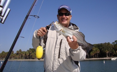 The pattern from Saturday worked on Sunday, keying in on 4-6' inshore flats loaded with mixture of grass and sand. I was working silver jerk baits slowly along the bottom with positive results. Spotted sea trout to 16" inhaled these baits as if they had not eaten in a month. Most often trout hit the jig as it falls so I recommend a loop knot to make the jig fall naturally.