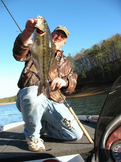 Here is a pic of the big fattie for the day caught on a "hair jig" (Float N Fly) on uh 2lb Triple Fish fluorocarbon line. I used a custom made fly made by master fly tyer David Lester of Natures Tackle Box Fame in Hiram, GA. The cool thing is David will make them anyway you want them and with the "special hook" :)