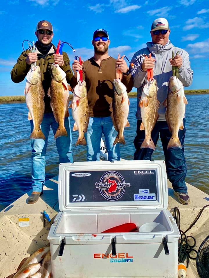 Last week we helped Captain Nicholas Rando of Fishaholic Fishing Charters with a 3-boat trip. Brad, Jay, and Cage were with me as we headed out after some more of these winter Delacroix redfish. Cold water temps kept the bite off until after noon, but when we found them, they made it count, boating their limit by 2 PM. A great crew that was a pleasure to fish with! Thanks to Captain Nick for the trip.