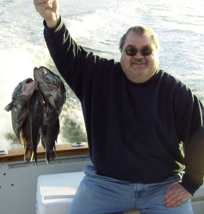 Today we were joined by Bob Williams of Arlington, VA on an offshore bottom trip in search of good eating fish and maybe a Grouper. We did manage a Gag but measuring 22" he missed the keepable length by 2" and we had to release him. However, the "knot head" Black Sea Bass were plentiful and willing to bite. In short time we were limited out on Black Bass and Atlantic Sharpnose Sharks and went in search of something different.