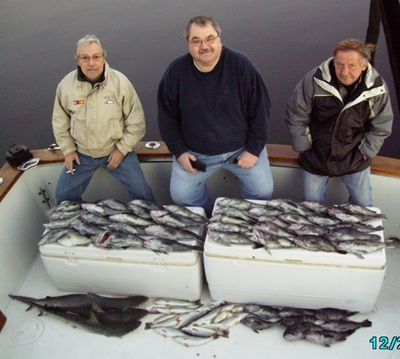 At first the action was slow, but the trick to Grey Trout is pin-pointing the school and getting anchored right on top of it. Capt. Butch is a master at this skill and soon we were jigging up Trout 3 at a time, most were 11-11 1/2" just shy of the 12" size limit, but in the end the crew was able to pull out several keeper sized Greys and some Croakers for the frying pan.
