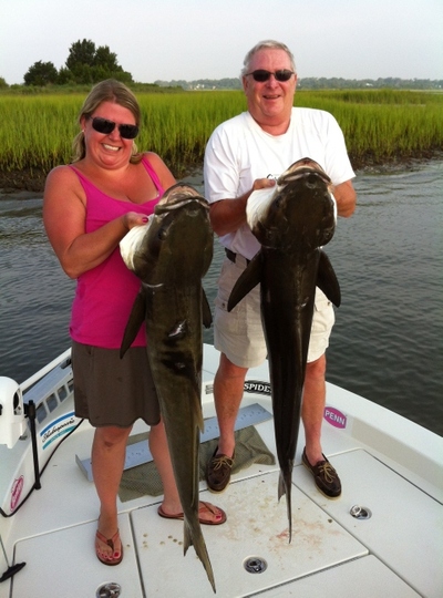 The Sheephead fishing is still going very good and should be good until late October. Rigging is easy for Sheephead; I use a short carolina rig with forty pound mono or fluorocarbon leader about eight to ten inches long. The hook is a number one or 1/0 live bait nose hook; small, sharp and strong, very important for Sheephead! Look for Sheephead around pilings, bulkheads and large oyster rocks that stay covered up by water most of the tide. For bait, I catch fiddler crabs on mud banks on the ICW. Sheephead fishing takes patients and time to catch them but it's worth the time because Sheephead are good to eat and I've had a few nice Black drum lately while Sheephead fishing!